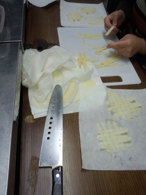 短冊に切って籠に編んで素揚げしました。