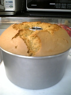 焼きたての真菰(まこも)シフォンケーキです。