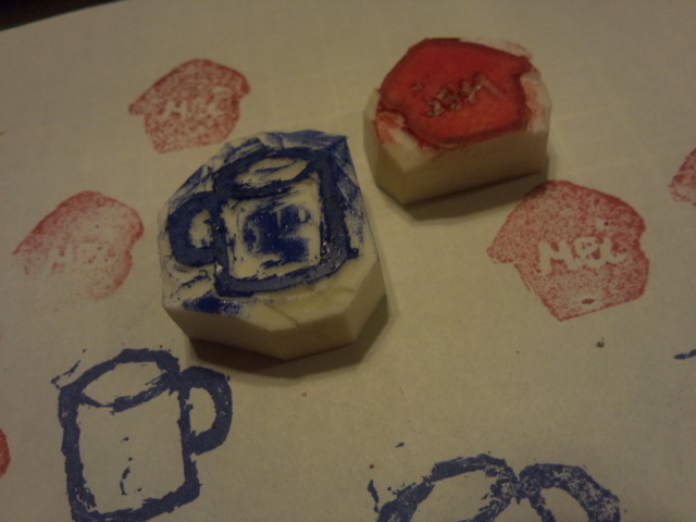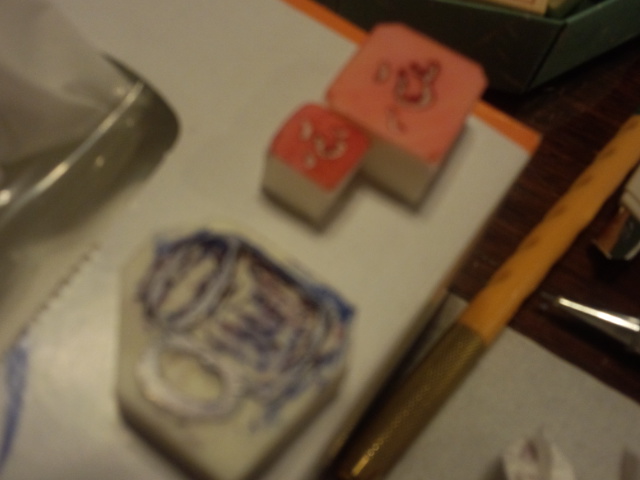 消しゴムはんこを指導していただいて、