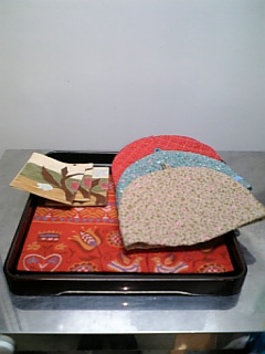 コースターとランチョンマットは、帯を再利用して、